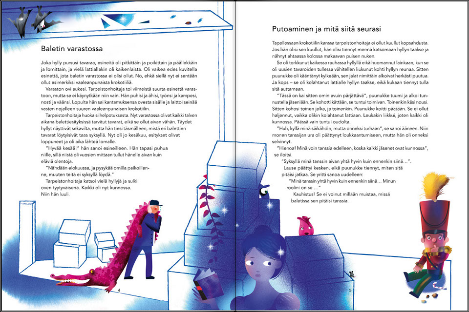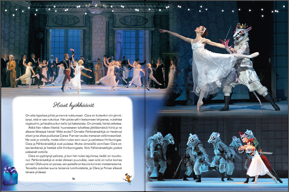 Roolinsa unohtaneen puunuken tarina on hauska ja hiukan tunteikaskin kuvaus baletin sadunomaisesta maailmasta, jossa kaikki on mahdollista. Kiehtova kuvitus tulvii sadun lumoa ja tanssin kauneutta.